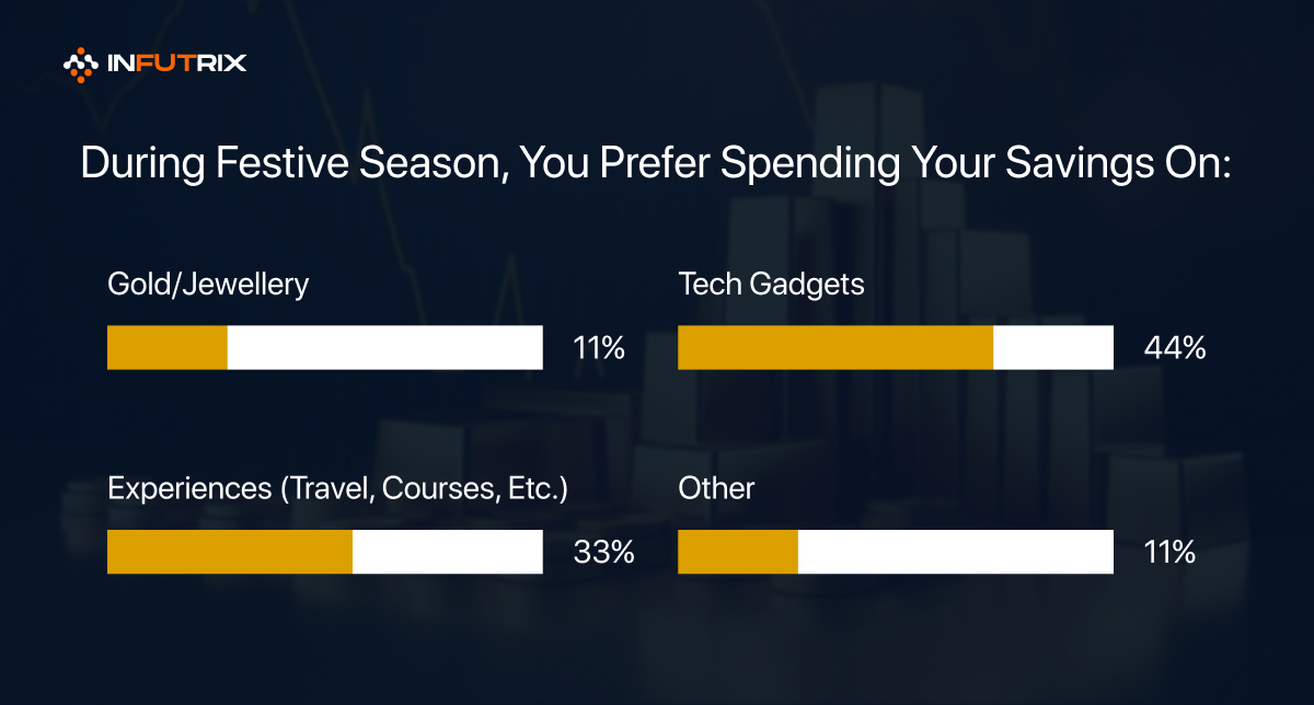 Based on the above analysis, it’s evident that the festive spending mindset is shifting. Our internal poll at Infutrix supports this trend: the majority of our team, primarily young professionals, prefer investing in tech and experiences over conventional options.